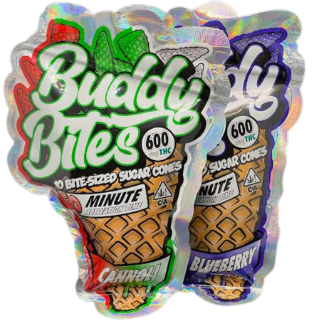 *NEW* BUDDY BITESÂ BITE-SIZED SUGAR CONES. AMAZING TASTING CHOCOLATE CONES THAT HIT. 60MG THC EACH CONTAINS: MILK,WHEAT & SOY NOTE*** MANUFACTURED ON EQUIPMENT THAT PROCESSES TREE NUTS