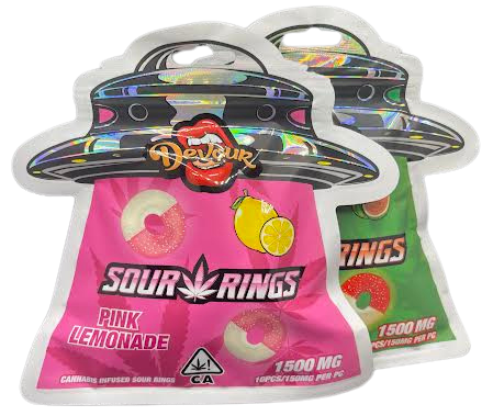 ARE YOU READY FOR EXTREME SOUR RINGS !!!! DEVOUR WENT FULL THROTTLE WITH THESE 1500 MG HIGH CRAWLERS. 10 PIECES 150MG EACH