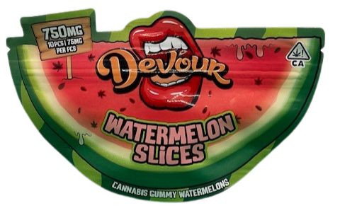 Devour… Edibles that work ! 750mg EACH 10 PER PACK LEVEL UP FROM THE AVERAGE EDIBLE WITH NEW DEVOUR 750MG WATERMELON SLICES *STAFF PICK
