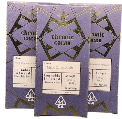 Dive into the CHRONIC CACAO world with our unbeatable infused chocolate. This 500MG Premium Chocolate Bar has 15 pieces. Treat yourself to a CHRONIC CACAO and ride the wave of pure delight